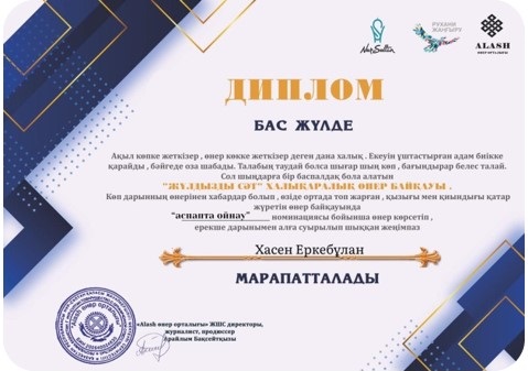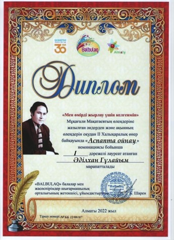 Әбдіқадыр Айшабике Олжасқызы. Жетекшісі - Қабден Қырмызы Меңдібайқызы. |