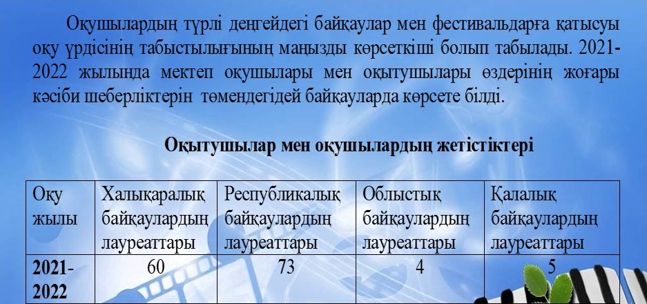 Мұғалімдер мен оқушылардың республикалық халықаралық жетістіктері