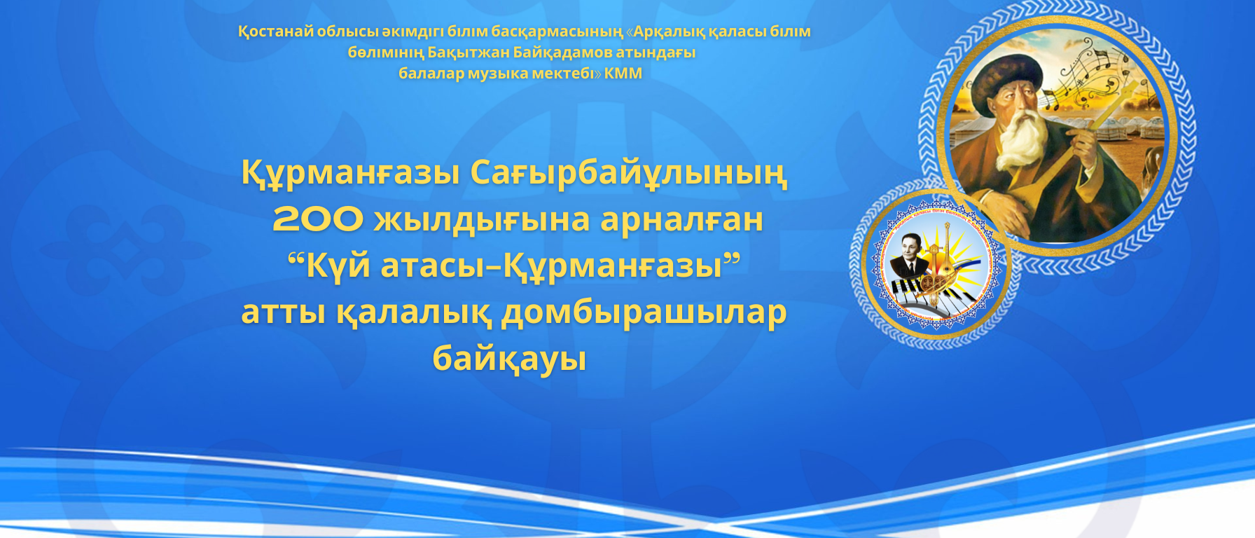 Қостанай облысы әкімдігі білім басқармасының Арқалық қаласы білім бөлімінің Б.Байқадамов атындағы балалар музыка мектебі" КММ ұйымдастыруымен Рухани жаңғыру жобасы аясында Құрманғазы Сағырбайұлының 200 жылдығына арнап "Күй атасы- Құрманғазы" атты қалалық домбырашылар байқауы өткізілді.