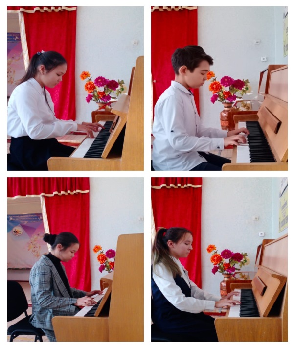 Н.Торопованың "Весенний этюд" туындысын Абдибек Айдана орындаса, осы автордың "Частушкиын" Муканова Хадиша;Алпысбаев Алишер У.Гиллоктың "Зачарованное дерево" туындысымен қуантса, Сайлаубек Альмира "Странники";Тулентаева Амина "Гудбай", Муратбек Дильназ Фоссердің "Мелодия души", Муратбек Дильназ бен Муратбек Айбота Торопованың "Мелодия осени";Кенжебекова Жания К.Шуманның "Смелый наездник", Мадиқызы Айханым Д.Кабалевскийдің "Клоуны";Черепанов Назар, Батырхан Айзере, Абдибек Адилет, Муратбек Айбота, Мурат Амина, Карбозова Аяна "Я люблю кофе, я люблю чай" шығармасын орындап, көрерменнің ыстық ықыласына бөленді.