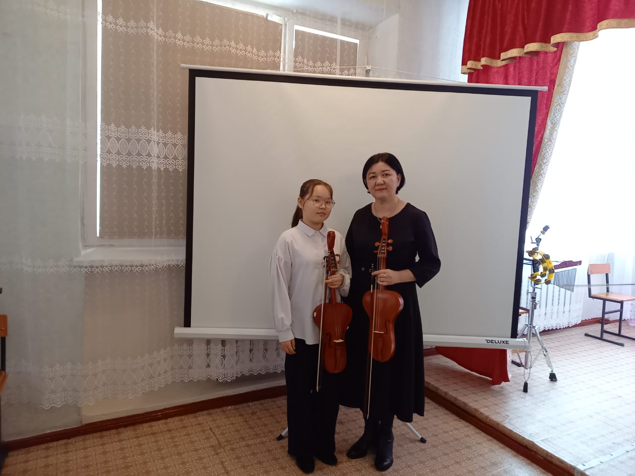 🎻3 сынып оқушылары Жасмин Әбдімәлік, Мадина Шотпай оқытушысымен Неаполитандық әні "Санта Лючия";