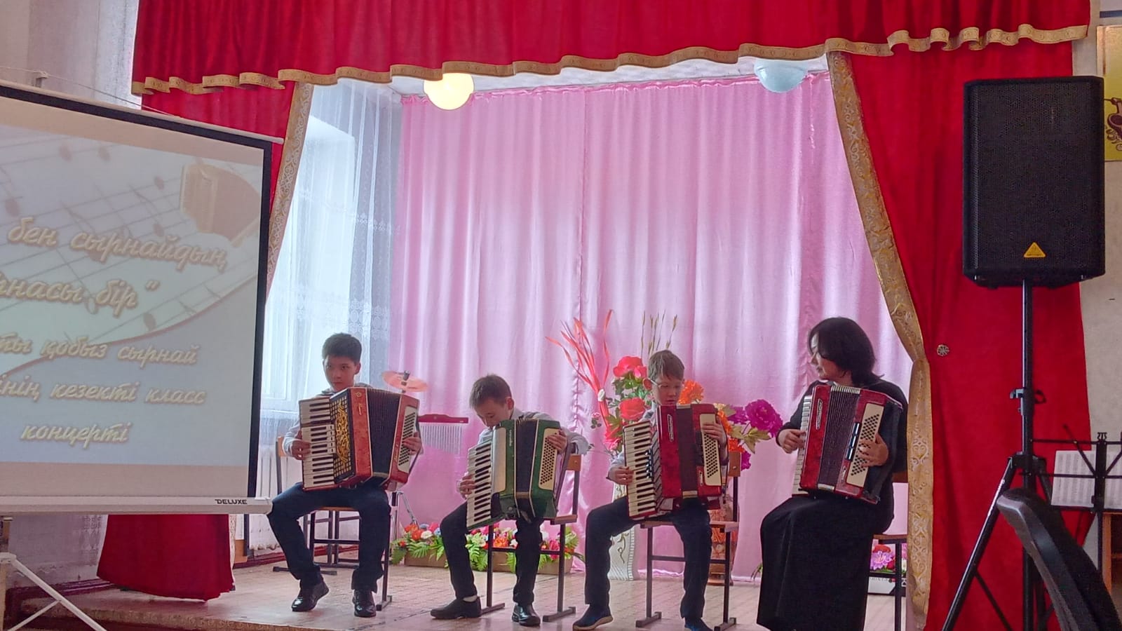 Қобыз бөлімі мұғалімдері Хасенова Р.М. Тулегенова Ж.А. және Кабылова К.С. Утегенова А.Ж. мен аккордеон бөлімінің мұғалімі Газизова Р.А.-ның класс концерттері