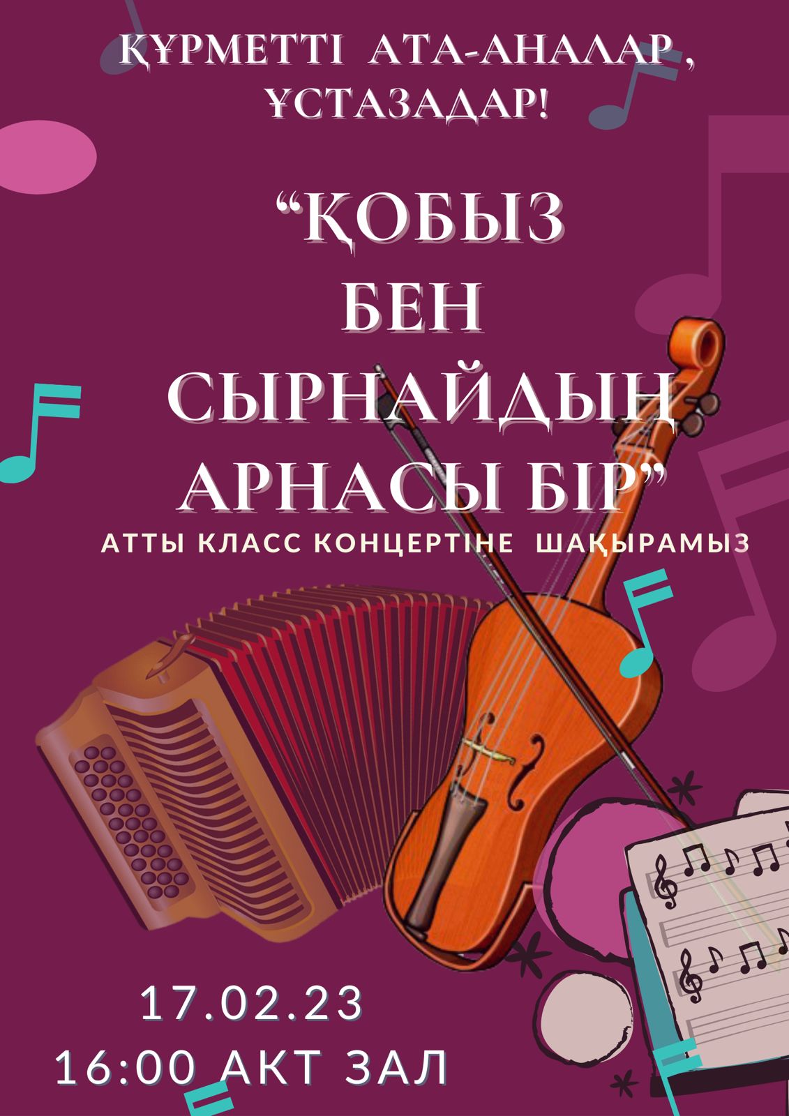 🎻 Оған дәлел, қазіргі таңда қобыз аспабына аса мән беріліп, ұрпаққа мұра етуді мақсат етуіміз. Сол себепті, Б.Байқадамов атындағы балалар музыка мектебі қобыз бөлімінің мұғалімдері атап айтсақ Ж.И. Бултирикова, Р.М.Хасенова, Ж.А.Тулегенова, К.С.Кабылова, А.Ж.Утегенованың және аккордеон бөлімінің мұғалімі Р.А.Газизованың ұйымдастыруымен Үндестік жобасы аясында аталған тақырыпта класс- концерт көпшілік назарына ұсынылды.