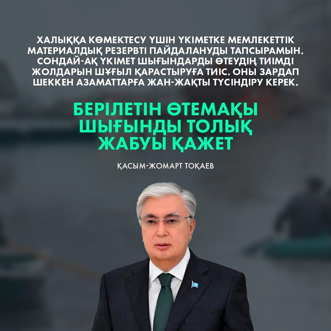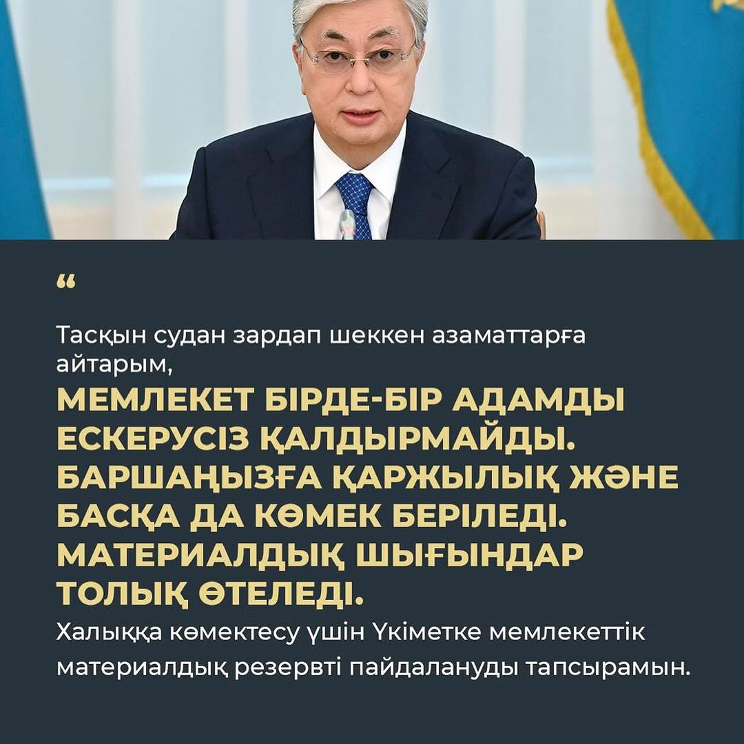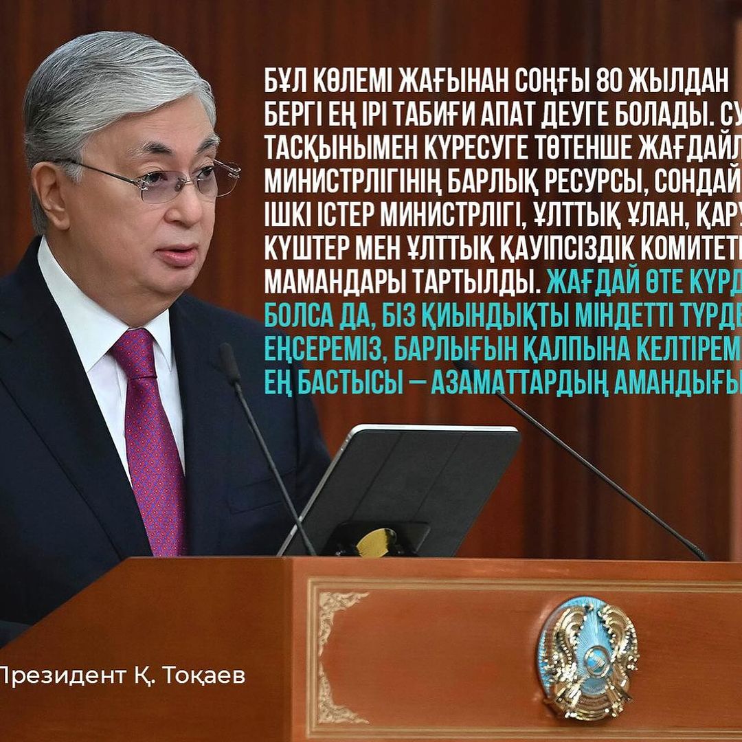 Президент Қасым - Жомарт Тоқаевтың су тасқынына байланысты Қазақстан халқына үндеуі