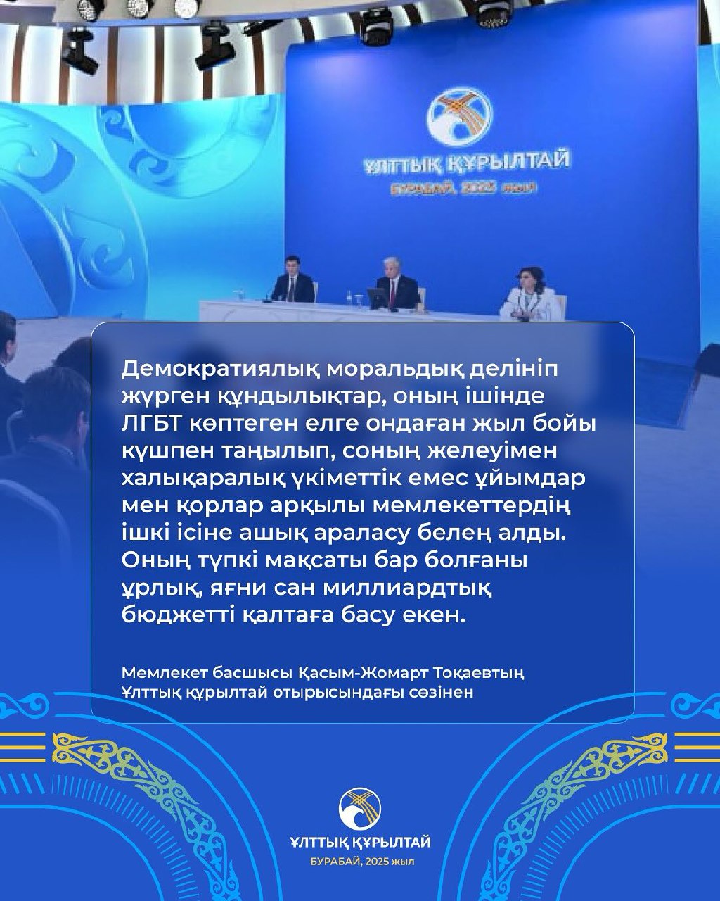 ҚР Президенті Қасым - Жомарт Тоқаевтың Бурабайда өткен IV ұлттық құрылтай отырысындағы сөзінен.