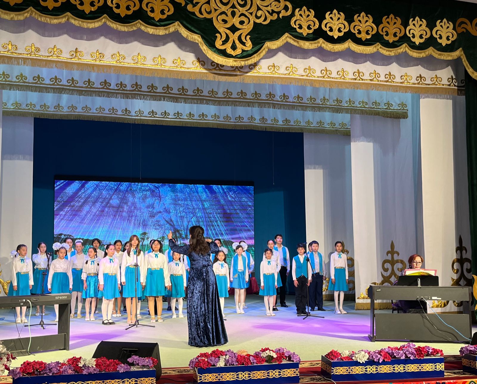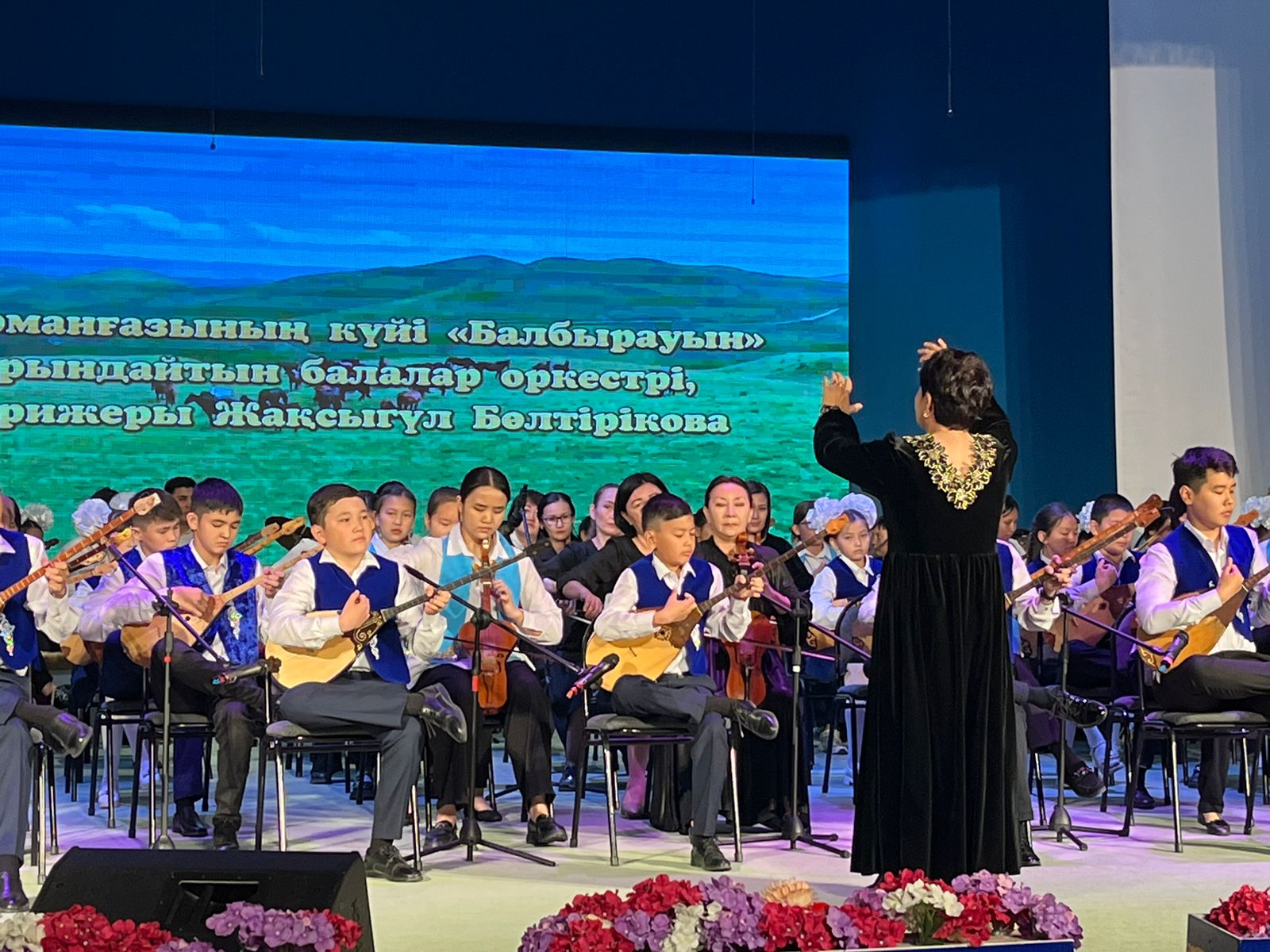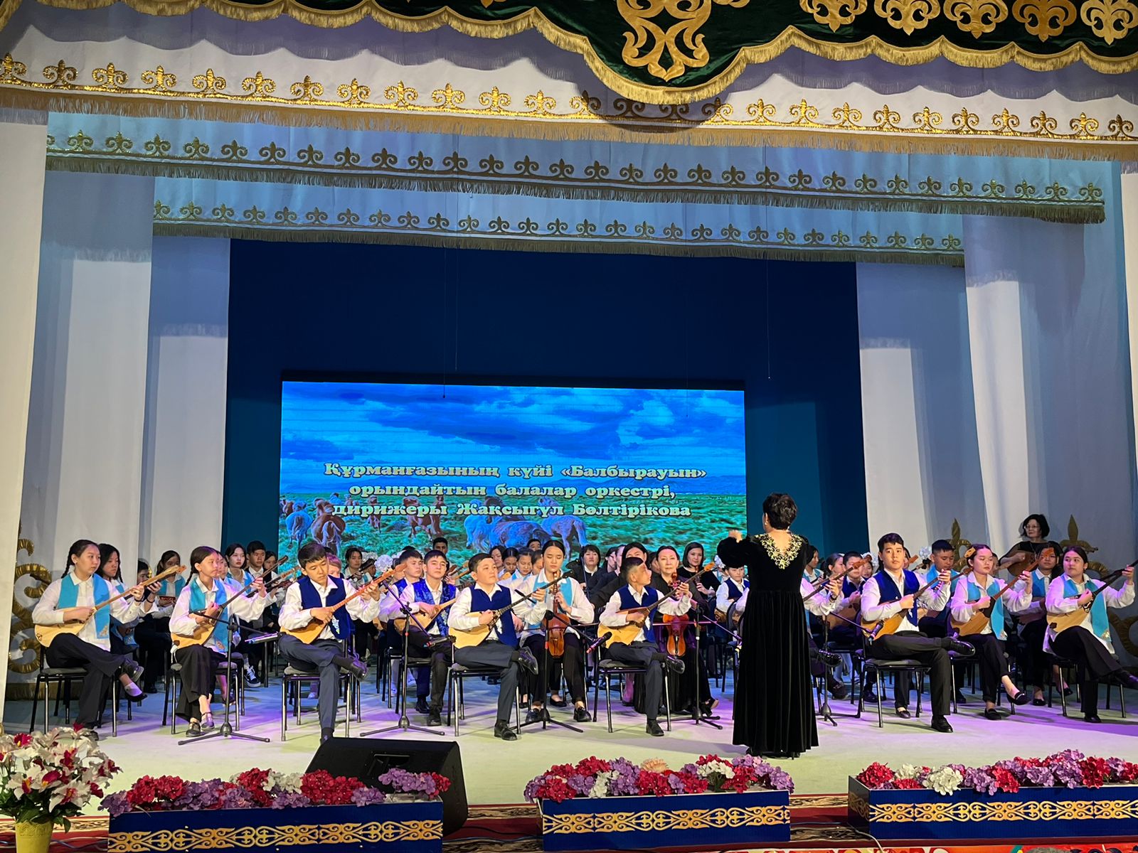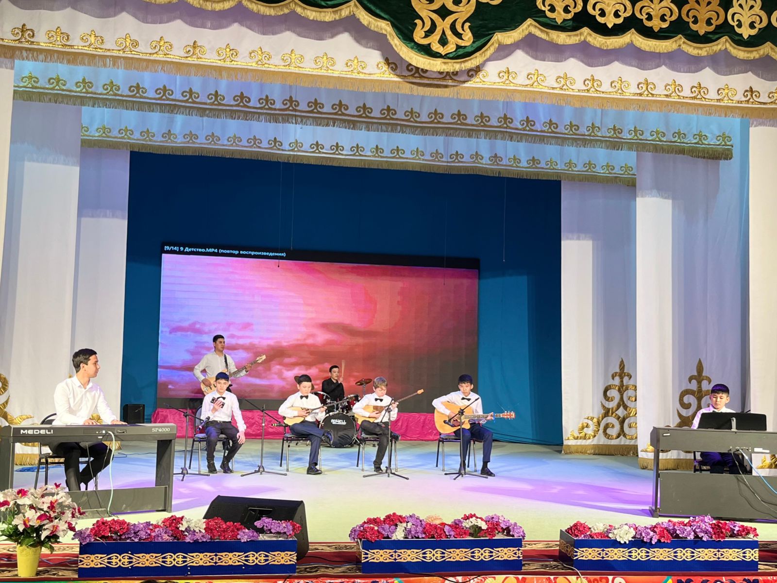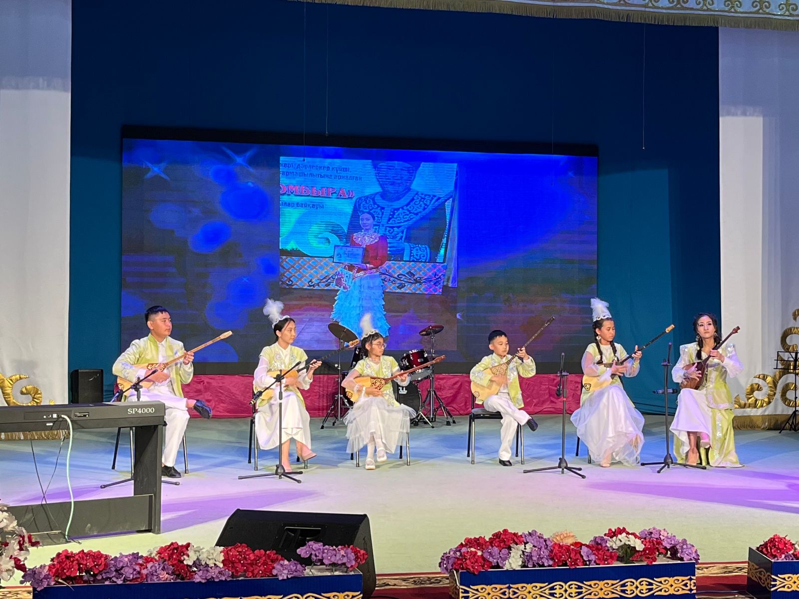 20 мамыр күні Қазақ жасөспірімдер театрында елімізде ЮНЕСКО көлемінде тойланып жатқан күй атасы - Құрманғазының 200 жылдық, ұлт ұстазы Ахмет Байтұрсыновтың 150 жылдық мерейтойға және ата-аналарға арналған облыстық «Үндестік» жобасы аясына орай мектебіміздің «Өнерге қанат қаққандар» атты жылдық есеп беру концерті өткізілді.Игі жақсылардың басын қосқан бұл концерттің алғашқы шымылдығын 80 оқушыдан құралған балалар оркестрі Құрманғазының күйі «Балбырауынды» дирижер Бөлтірікова Жақсыгүл Ибрагимқызының жетекшілігімен орындады. Концертіміз Ақанов Әділ Кәкиұлының жетекшілігімен қазақ композиторларының шығармаларынан құралған "Күй тартысқа" ұласты. Қорытынды бөлім барлық оркестр Н.Тілендиевтің «Әлқисса» күйімен тәмамдалды. Ақын аз Байтұрсынов Ахметтей, Сөзі алтын, мағынасы меруерттей дей келе А.Байтұрсыновтың «Аққұм» әнін вокал класының оқушысы, бірнеше дүркін республикалық, халықаралық байқаулардың жүлдегері Нұржайна Таубалды нақышына келтіре шырқады. Қазақстанда тұңғыш құрылған «Шертер» фольклорлы- этнографиялық ансамбльдің әншілері Сайлаубек Ордабаев пен Отаркүл Мұқатованың немерелері Томирис, Альмира және Нұрғисса Сайлаубектердің орындауында Халық күйі «Қара жорға» орындалса, болашағы көп үміт күттіретін шәкірттеріміз Аяулым, Айдана, Алихан, Адилет Абдибековтер Кармайклдің «Сердце и душа», Айтқали Жайымов «Шалқыма» орындайтын домбыра класының оқушысы, облыстық, республикалық, халықаралық байқаулардың лауреаты Қадыр Нұрәли, концертмейстер Бондаренко Римма. Құрманғазы, Тәттімбет бабамыздың, Дина анамыздың күйлерін санасына сіңірген шәкірттеріміз Ермұрат Үсеновтің «Кербез сұлу» шығармасын оқушылар халық аспаптар ансамблі Балым Жусупованың жетекшілігімен орындап берді. Домбыра, қобыз, сені ойнатамын,Толғау сап, төңіректі ойлатамын дей келе, Мұқан Төлебаевтың «Кестелі орамал» туындысын қобызшылар ансамблі Райхан Хасенова мен концертмейстер Жумаш Молдажанованың жетекшілігімен орындап, көрерменнің ыстық ілтипатына бөленді. Мектебіміздің ең жас күйші қыздарының орындауында халық күйі «Нәр ағашы» Б.Жусуповның жетекшілігімен. Абдулхамит Райымбергеновтың шығармасы «Секіртпе» Әсел Кәрібаеваның жетекшілігімен домбырашылар ансамблі қоңыр домбыраның күмбіріне бөледі. Көптің көңілінен шыққан концертіміз орындайтын шәкіртіміз Назым Алтынбаеваның орындауында, Жумаш Молдажанованың күйсандықта сүйемелдеуімен халық әні «Дайдидаумен» жалғасты. Дәстүрлі ән класынан құралған дуэт халық әні «Үш меркі» әнін тарту етті. Роза Газизованың жетекшілігімен аккордеоншыларымыз да қалыс қалмай, Шуберттің «Экосез» туындысын орындап берді.Вокалдық ансамбль жетекшісі Гүлнұр Баяхметованың орындауында ешқашан ескірмейтін «Қазақ әндерінен попурри» орындалды. Марат Бердіғұловтың «Ақсауыт» шығармасы жетекшісі Ә.Ақановтың «Арқа сазы» ұлт аспаптар ансамблінің орындауында көпшіліктің құрметіне бөленді. Шәмші Қалдаяқовтың «Теріскей» әнін О.Қапан нақышына келтіре шырқады.Денеңді шымырлатып, толқытатын, Мәңгілік басымды ием, өнерге мен демекші, Т.Мұханбетжанов «Детство» шығармасы С.Шайхин жетекшілік ететін БЭНД Байқадамов. Карл Дженкинс "Палладио" орындайтын ансамбль жетекшісі Райхан Хасенова. «Я люблю кофе» орындайтын бірінші сынып оқушылары, жетекшісі Молдажанова Жумаш. Алтынайдың күйі «Ақжелең» орындайты