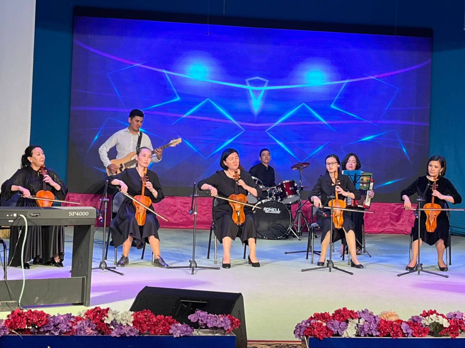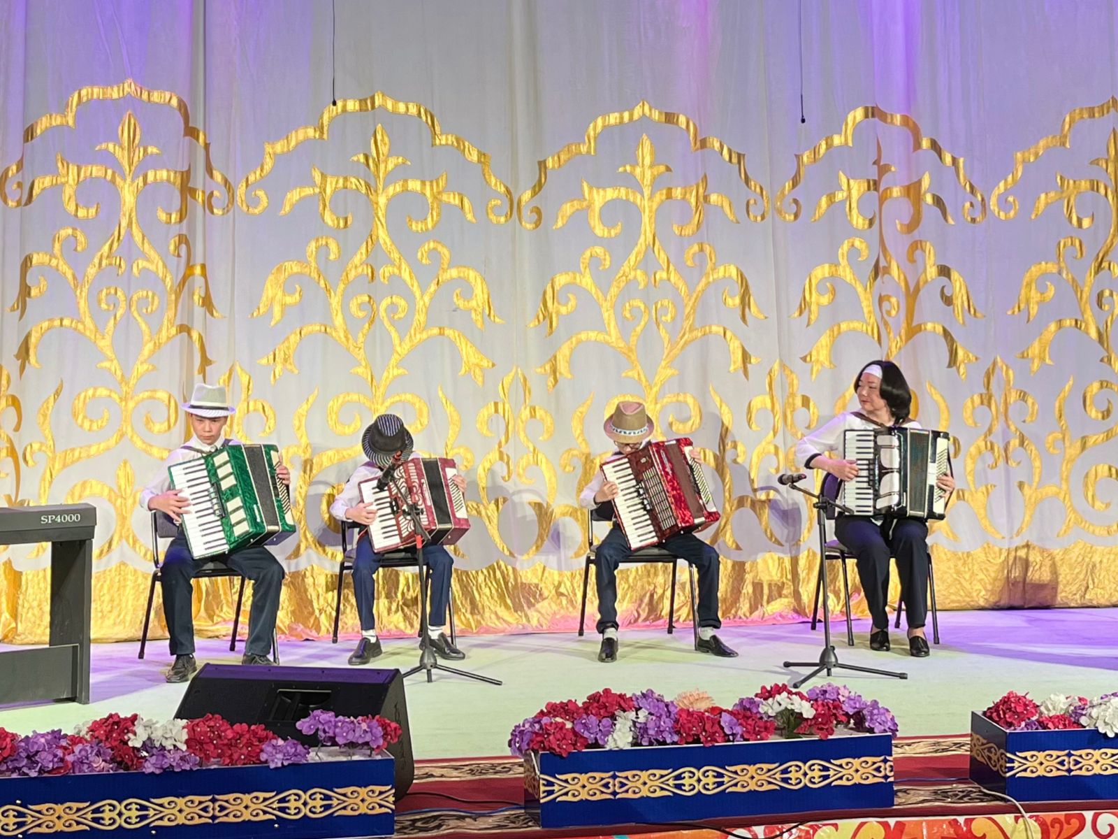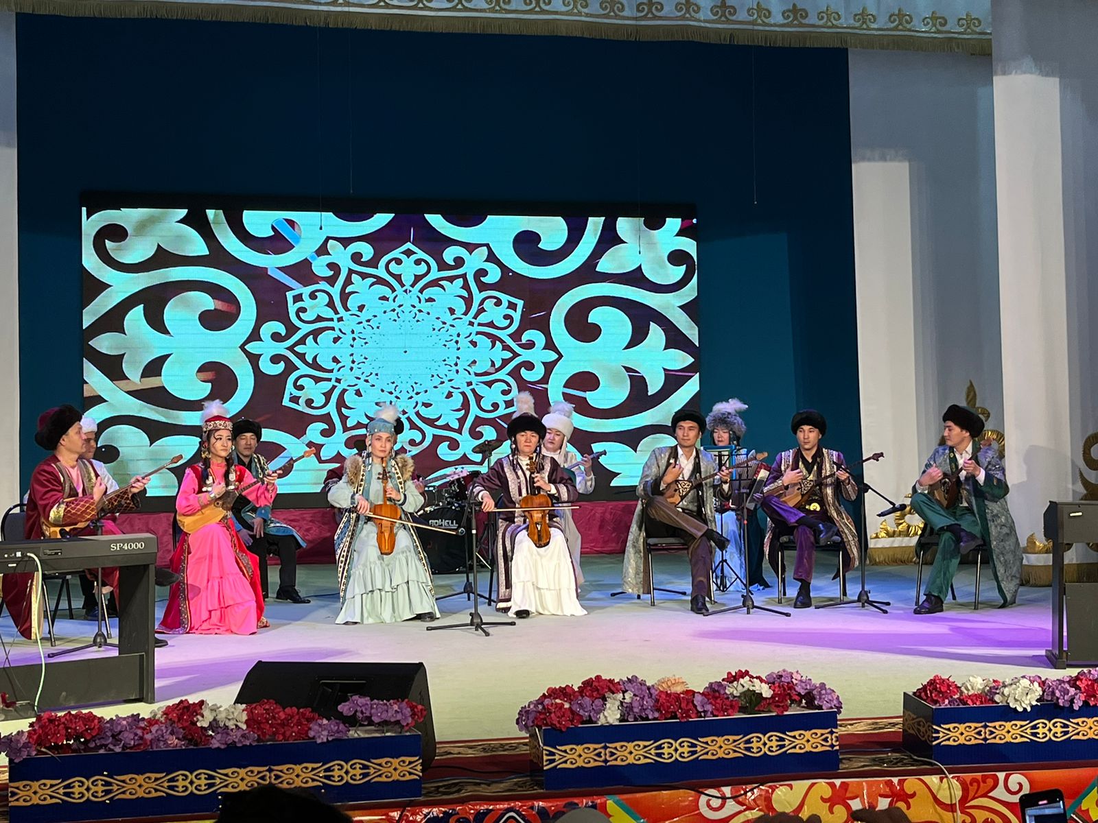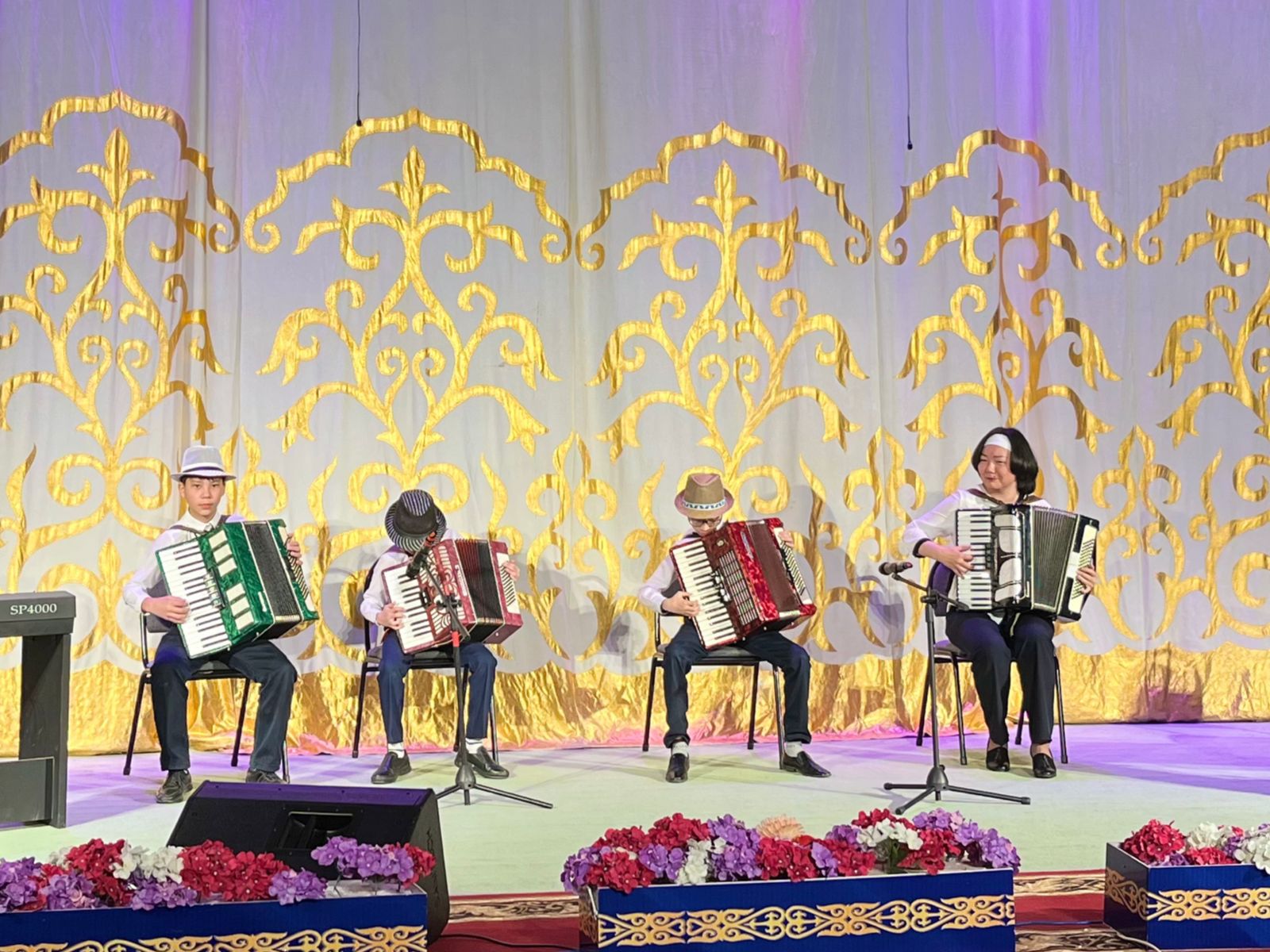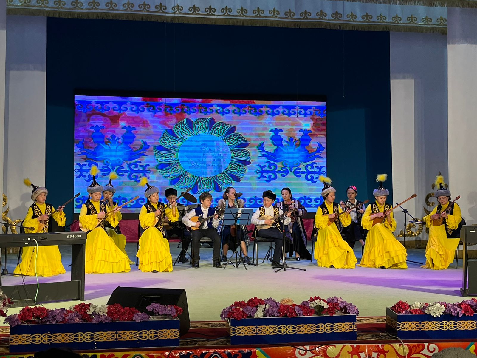 20 мамыр күні Қазақ жасөспірімдер театрында елімізде ЮНЕСКО көлемінде тойланып жатқан күй атасы - Құрманғазының 200 жылдық, ұлт ұстазы Ахмет Байтұрсыновтың 150 жылдық мерейтойға және ата-аналарға арналған облыстық «Үндестік» жобасы аясына орай мектебіміздің «Өнерге қанат қаққандар» атты жылдық есеп беру концерті өткізілді.Игі жақсылардың басын қосқан бұл концерттің алғашқы шымылдығын 80 оқушыдан құралған балалар оркестрі Құрманғазының күйі «Балбырауынды» дирижер Бөлтірікова Жақсыгүл Ибрагимқызының жетекшілігімен орындады. Концертіміз Ақанов Әділ Кәкиұлының жетекшілігімен қазақ композиторларының шығармаларынан құралған "Күй тартысқа" ұласты. Қорытынды бөлім барлық оркестр Н.Тілендиевтің «Әлқисса» күйімен тәмамдалды. Ақын аз Байтұрсынов Ахметтей, Сөзі алтын, мағынасы меруерттей дей келе А.Байтұрсыновтың «Аққұм» әнін вокал класының оқушысы, бірнеше дүркін республикалық, халықаралық байқаулардың жүлдегері Нұржайна Таубалды нақышына келтіре шырқады. Қазақстанда тұңғыш құрылған «Шертер» фольклорлы- этнографиялық ансамбльдің әншілері Сайлаубек Ордабаев пен Отаркүл Мұқатованың немерелері Томирис, Альмира және Нұрғисса Сайлаубектердің орындауында Халық күйі «Қара жорға» орындалса, болашағы көп үміт күттіретін шәкірттеріміз Аяулым, Айдана, Алихан, Адилет Абдибековтер Кармайклдің «Сердце и душа», Айтқали Жайымов «Шалқыма» орындайтын домбыра класының оқушысы, облыстық, республикалық, халықаралық байқаулардың лауреаты Қадыр Нұрәли, концертмейстер Бондаренко Римма. Құрманғазы, Тәттімбет бабамыздың, Дина анамыздың күйлерін санасына сіңірген шәкірттеріміз Ермұрат Үсеновтің «Кербез сұлу» шығармасын оқушылар халық аспаптар ансамблі Балым Жусупованың жетекшілігімен орындап берді. Домбыра, қобыз, сені ойнатамын,Толғау сап, төңіректі ойлатамын дей келе, Мұқан Төлебаевтың «Кестелі орамал» туындысын қобызшылар ансамблі Райхан Хасенова мен концертмейстер Жумаш Молдажанованың жетекшілігімен орындап, көрерменнің ыстық ілтипатына бөленді. Мектебіміздің ең жас күйші қыздарының орындауында халық күйі «Нәр ағашы» Б.Жусуповның жетекшілігімен. Абдулхамит Райымбергеновтың шығармасы «Секіртпе» Әсел Кәрібаеваның жетекшілігімен домбырашылар ансамблі қоңыр домбыраның күмбіріне бөледі. Көптің көңілінен шыққан концертіміз орындайтын шәкіртіміз Назым Алтынбаеваның орындауында, Жумаш Молдажанованың күйсандықта сүйемелдеуімен халық әні «Дайдидаумен» жалғасты. Дәстүрлі ән класынан құралған дуэт халық әні «Үш меркі» әнін тарту етті. Роза Газизованың жетекшілігімен аккордеоншыларымыз да қалыс қалмай, Шуберттің «Экосез» туындысын орындап берді.Вокалдық ансамбль жетекшісі Гүлнұр Баяхметованың орындауында ешқашан ескірмейтін «Қазақ әндерінен попурри» орындалды. Марат Бердіғұловтың «Ақсауыт» шығармасы жетекшісі Ә.Ақановтың «Арқа сазы» ұлт аспаптар ансамблінің орындауында көпшіліктің құрметіне бөленді. Шәмші Қалдаяқовтың «Теріскей» әнін О.Қапан нақышына келтіре шырқады.Денеңді шымырлатып, толқытатын, Мәңгілік басымды ием, өнерге мен демекші, Т.Мұханбетжанов «Детство» шығармасы С.Шайхин жетекшілік ететін БЭНД Байқадамов. Карл Дженкинс "Палладио" орындайтын ансамбль жетекшісі Райхан Хасенова. «Я люблю кофе» орындайтын бірінші сынып оқушылары, жетекшісі Молдажанова Жумаш. Алтынайдың күйі «Ақжелең» орындайты