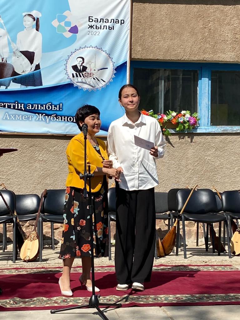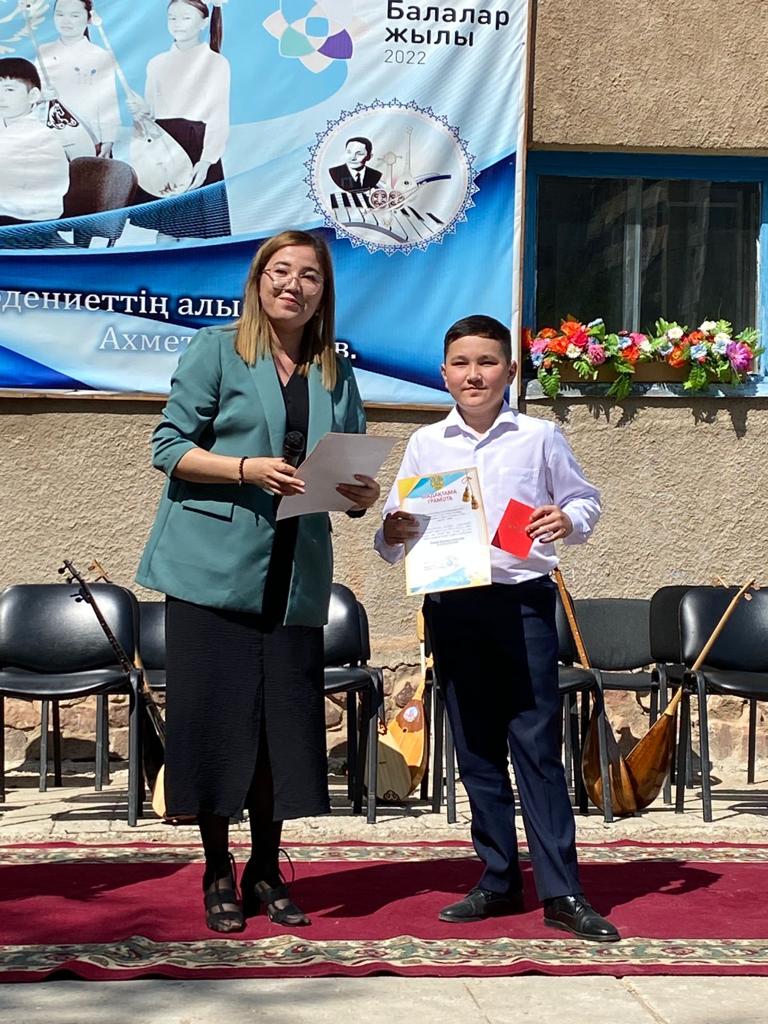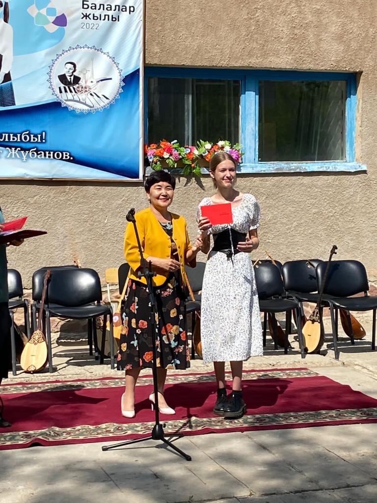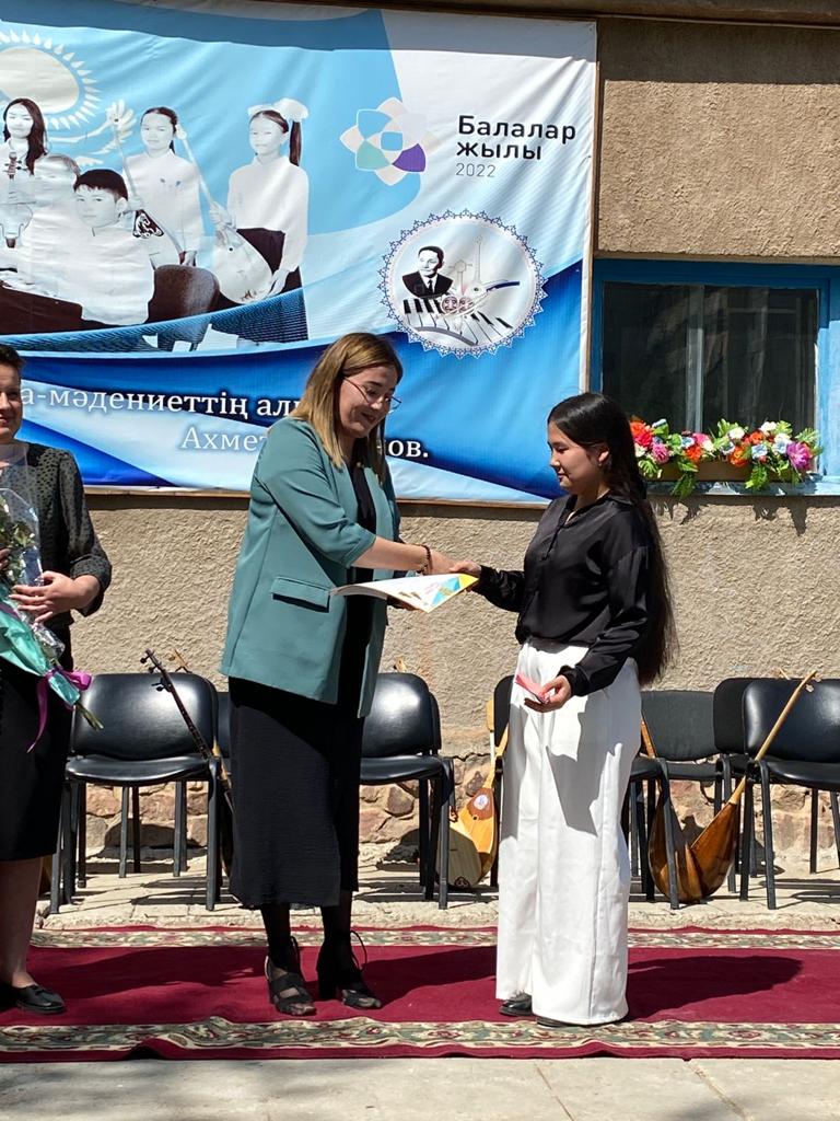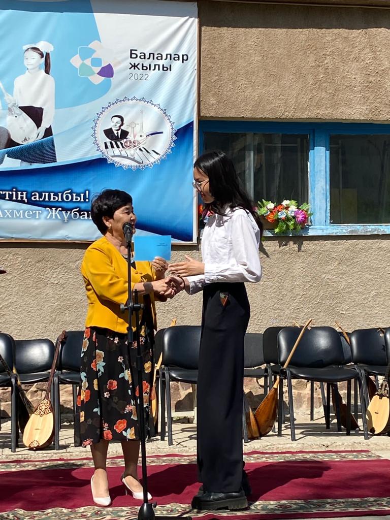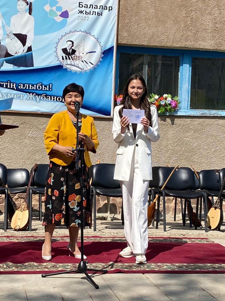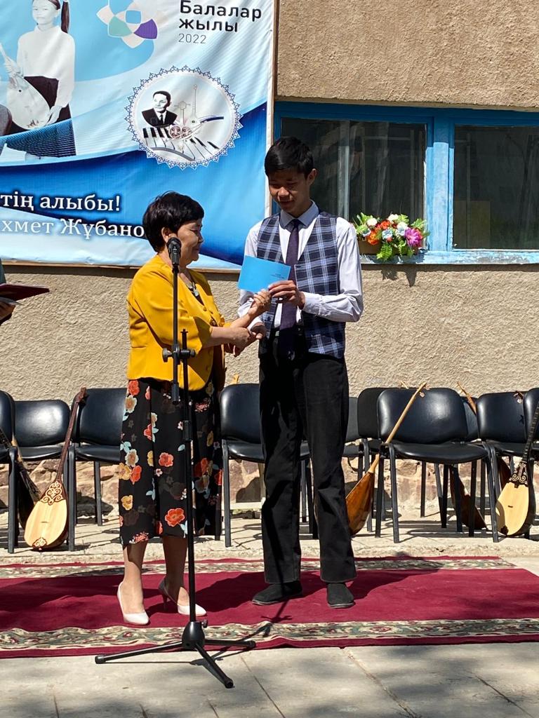 Б.Байқадамов атындағы балалар музыка мектебінде бітіруші түлектерге арналған концерт өтті.Өз кезегінде оқушылар мен ұстаздар өнерлерін ортаға салып, ән мен күйден шашу шашты.Атап айтатын болсақ, бітіруші түлектері мен жетекшілерінен құралған домбырашылар ансамблінің орындауында Құрманғазының «Балбырауын» күйі, Дәулет Айарудың орындауында Ұшқын Жамалбектің әні «Кейкі Мерген» әні кешіміздің шымылдығын ашты.Ары қарай сөз кезегі мектебіміздің директоры Жаксыгуль Ибрагимовнаға беріліп, бітіруші түлектерге салтанатты түрде ортаға шақырылып, Б.Байқадамов атындағы балалар музыка мектебін аяқтағанын растайтын үздік қызыл және жақсы оқығаны үшін көк түсті куәліктер табыс етілді.Келесі кезекте фортепиано бөлімінің бітіруші түлегі Майорова Варвара орындауында Абайдың «Көзімнің қарасы» әні, Мұқан Төлебаевтың «Кестелі орамалын» қобыз бөлімінің бітіруші түлегі Каирден Аяна концертмейстер Молдажанова Жумаш Кайрулаевнаның сүйемелдеуімен орындалды.Сонымен қатар,мектебіміздің мерекелік ic-шараларына белсене араласып жүрген бітіруші түлектерімізге арнайы мектеп директорының мадақтамасын табыстау директордың оқу ісі жөніндегі орынбасары Назира Әділханқызы мен кәсіподақ төрайымы Анна Владимировнаға сөз кезегі берілді.Серік Жұмабековтің “Жас қанат ұраным” әнін трионың орындауында шырқалды. Бүгінгі күнде біздің мектебімізден 2022 - 2023 оқу жылында фортепиано бөлімінен -5 оқушы, халық аспаптар бөлімі-қобыз аспабы бойынша-1 оқушы, домбыра аспабы бойынша-22 жұлдызды шәкірттеріміз музыка әлемінің алғашқы баспалдағынан білім алып, ұшқалы тұр. Алда басталар өмірдің саналы жолы ешкімді адастырмасын,сіздер жердегі жұлдыз болсаңыздар, аспандағы жұлдыздарыңыз өздеріңізге серік болып, алысқа жетелесін деген тілекпен, әсем әнмен қорытындыланған қоштасу концерті түлектерге арнап безендірілген мектеп ауласында естелікке фотосуретке түсумен аяқталды.