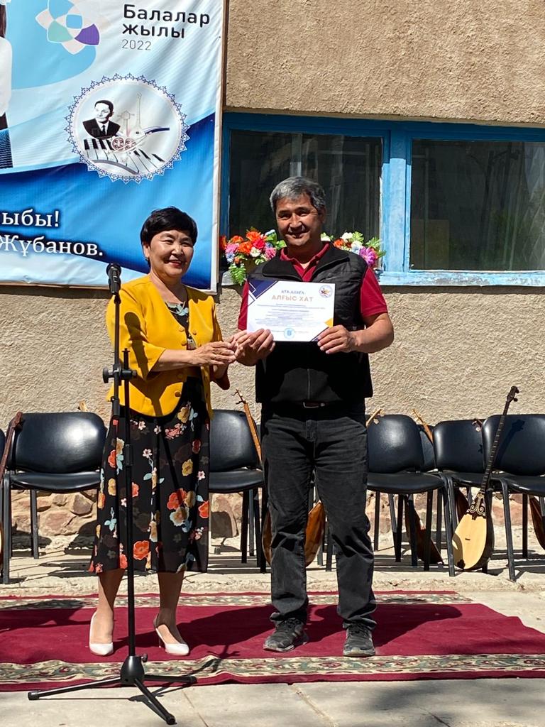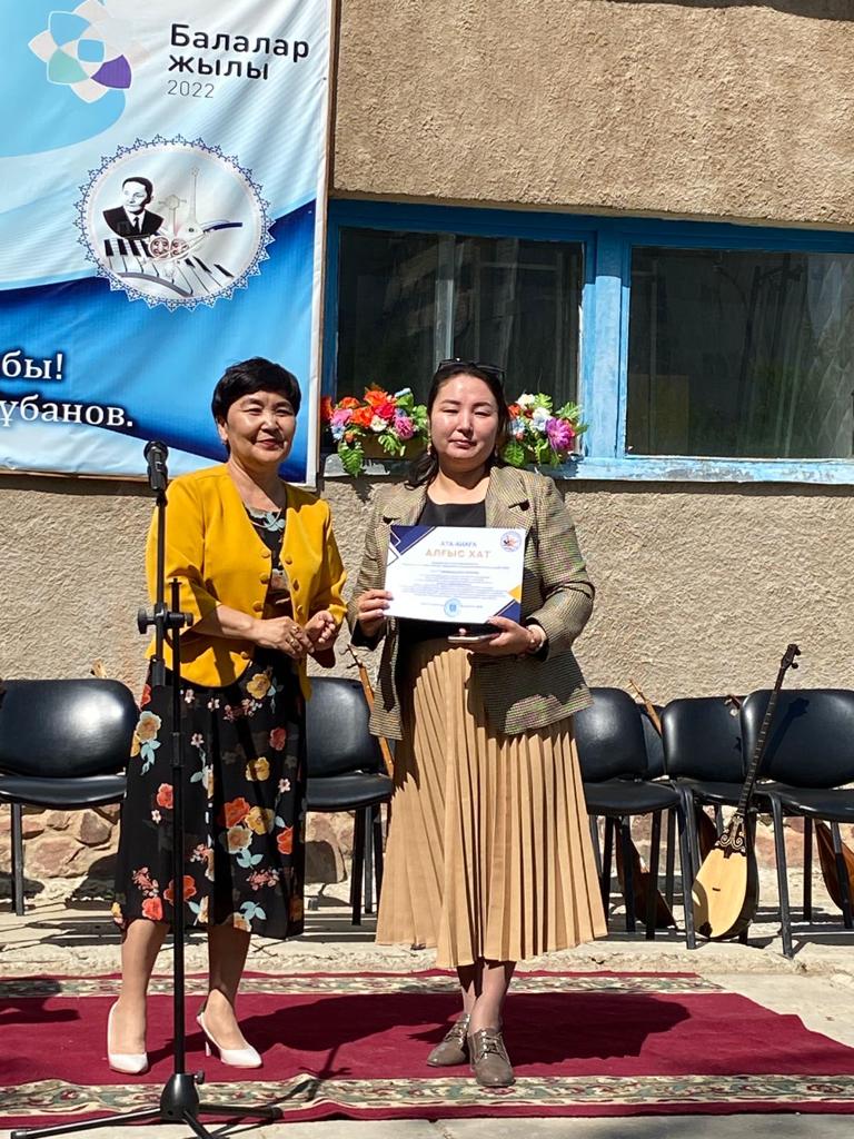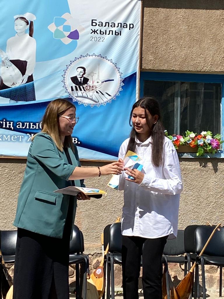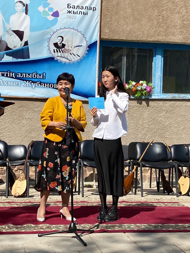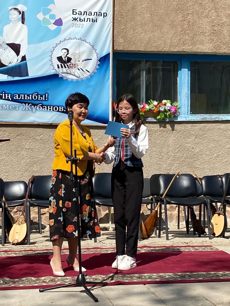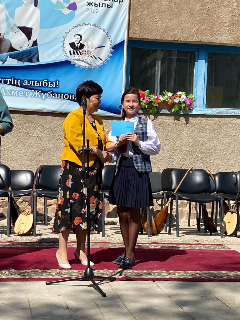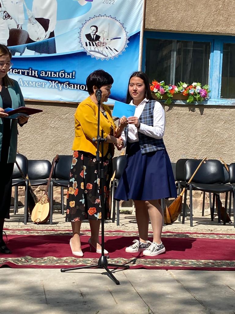 Б.Байқадамов атындағы балалар музыка мектебінде бітіруші түлектерге арналған концерт өтті.Өз кезегінде оқушылар мен ұстаздар өнерлерін ортаға салып, ән мен күйден шашу шашты.Атап айтатын болсақ, бітіруші түлектері мен жетекшілерінен құралған домбырашылар ансамблінің орындауында Құрманғазының «Балбырауын» күйі, Дәулет Айарудың орындауында Ұшқын Жамалбектің әні «Кейкі Мерген» әні кешіміздің шымылдығын ашты.Ары қарай сөз кезегі мектебіміздің директоры Жаксыгуль Ибрагимовнаға беріліп, бітіруші түлектерге салтанатты түрде ортаға шақырылып, Б.Байқадамов атындағы балалар музыка мектебін аяқтағанын растайтын үздік қызыл және жақсы оқығаны үшін көк түсті куәліктер табыс етілді.Келесі кезекте фортепиано бөлімінің бітіруші түлегі Майорова Варвара орындауында Абайдың «Көзімнің қарасы» әні, Мұқан Төлебаевтың «Кестелі орамалын» қобыз бөлімінің бітіруші түлегі Каирден Аяна концертмейстер Молдажанова Жумаш Кайрулаевнаның сүйемелдеуімен орындалды.Сонымен қатар,мектебіміздің мерекелік ic-шараларына белсене араласып жүрген бітіруші түлектерімізге арнайы мектеп директорының мадақтамасын табыстау директордың оқу ісі жөніндегі орынбасары Назира Әділханқызы мен кәсіподақ төрайымы Анна Владимировнаға сөз кезегі берілді.Серік Жұмабековтің “Жас қанат ұраным” әнін трионың орындауында шырқалды. Бүгінгі күнде біздің мектебімізден 2022 - 2023 оқу жылында фортепиано бөлімінен -5 оқушы, халық аспаптар бөлімі-қобыз аспабы бойынша-1 оқушы, домбыра аспабы бойынша-22 жұлдызды шәкірттеріміз музыка әлемінің алғашқы баспалдағынан білім алып, ұшқалы тұр. Алда басталар өмірдің саналы жолы ешкімді адастырмасын,сіздер жердегі жұлдыз болсаңыздар, аспандағы жұлдыздарыңыз өздеріңізге серік болып, алысқа жетелесін деген тілекпен, әсем әнмен қорытындыланған қоштасу концерті түлектерге арнап безендірілген мектеп ауласында естелікке фотосуретке түсумен аяқталды.